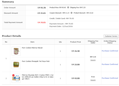 Sempena Ramadan banyak offer di 11street. Kali ini kami membeli stok air dan biskut raya pulak.